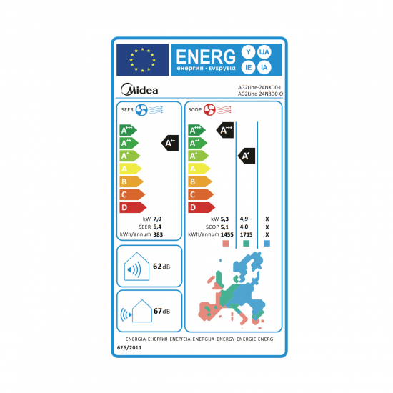 Το Κλιματιστικό Τοίχου – Air Condition MIDEA Xtreme AG2Line-24NXD0-I έχει ισχύ 24000 BTU και είναι κατάλληλο για χώρους από 50m² έως 55m².