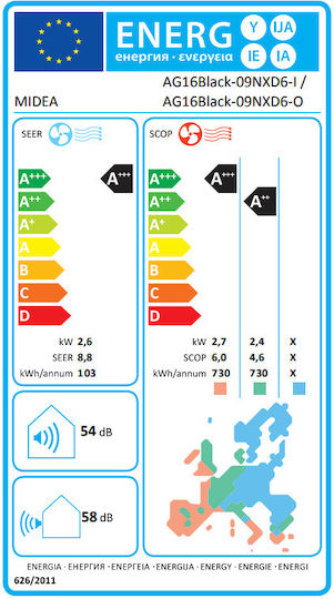 Το κλιματιστικό ανήκει στην ενεργειακή κλάση A+++, στην ψύξη και στην ενεργειακή κλάση A++ στη θέρμανση (μέση ζώνη). Η ενεργειακή κλάση μετριέται σε μια χρωματική κλίμακα επτά βαθμίδων από Α+++ έως D, με την κλάση Α+++ να είναι η αποδοτικότερη, ενώ αντίθετα η κλάση D, η ελάχιστα αποδοτική.