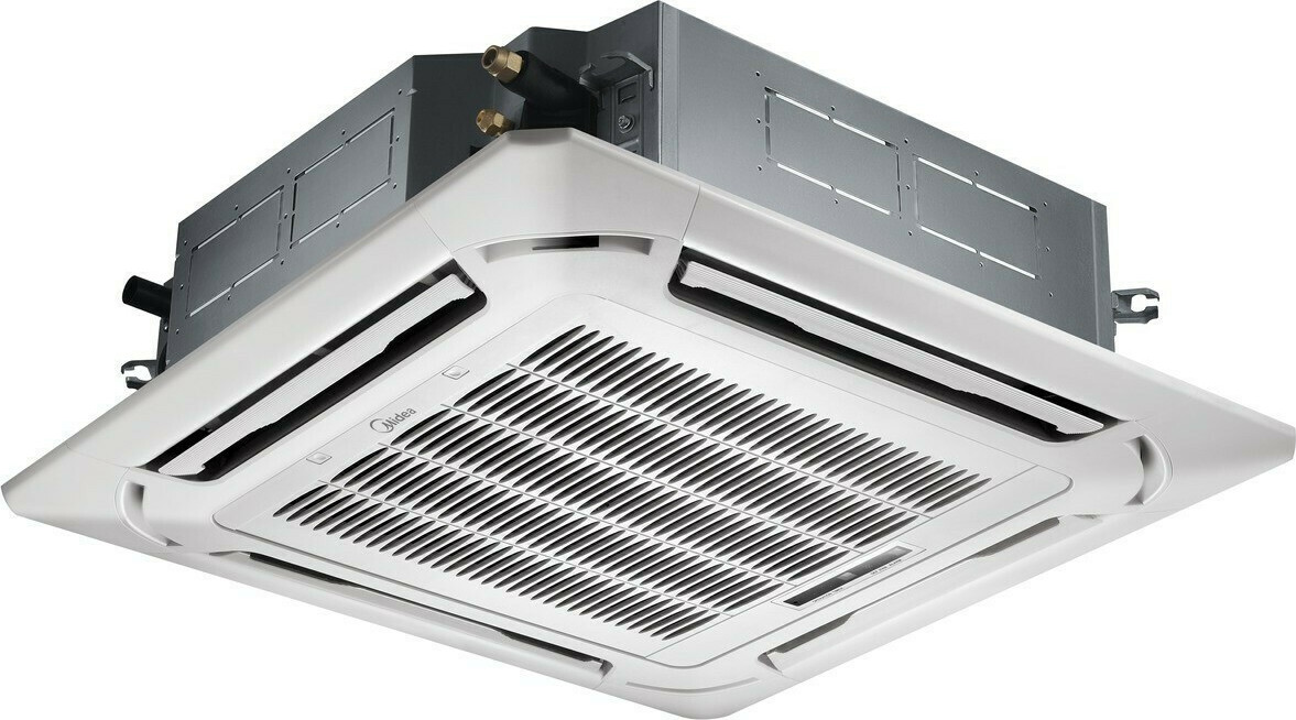 Κλιματιστικό τύπου κασέτα της εταιρείας Midea, με ενεργειακή κλάση A++/A+++. Έχει ισχύ ψύξης 30000 BTU και θέρμανσης 32000 BTU κάτι που το καθιστά ιδανικό για χώρους από 80 έως 120 τετραγωνικά μέτρα. Τοποθετείται στην οροφή του χώρου ενσωματωμένο σε ψευδοροφή, αλλά και ελεύθερο αν δεν είναι απαραίτητο για εσάς το εικαστικό κομμάτι. Η εξαγωγή του αέρα γίνεται μόνο από το σημείο στο οποίο είναι εγκατεστημένη η εσωτερική μονάδα, σε αντίθεση με τα καναλάτα κλιματιστικά όπου μπορούν να τοποθετηθούν πολλαπλά σημεία εξαγωγής αέρα. Λειτουργεί με ψυκτικό υγρό R32 που έχει ως αποτέλεσμα μεγαλύτερη απόδοση, οικονομία και είναι φιλικό προς το περιβάλλον.