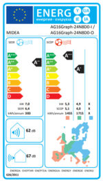 Το κλιματιστικό ανήκει στην ενεργειακή κλάση A++, στην ψύξη και στην ενεργειακή κλάση A+ στη θέρμανση (μέση ζώνη). Η ενεργειακή κλάση μετριέται σε μια χρωματική κλίμακα επτά βαθμίδων από Α+++ έως D, με την κλάση Α+++ να είναι η αποδοτικότερη, ενώ αντίθετα η κλάση D, η ελάχιστα αποδοτική.