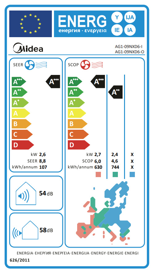 Η ενεργειακή κλάση των κλιματιστικών Midea σε όλες τις ζώνες, απόρροια των πολύ υψηλών εποχιακών συντελεστών απόδοσης (SEER & SCOP), μειώνει αισθητά την κατανάλωση ρεύματος, συμβάλλοντας περαιτέρω στη μείωση των εκπομπών ρύπων στην ατμόσφαιρα και εξασφαλίζοντας ταυτόχρονα τη μέγιστη απόδοση του κλιματιστικού.