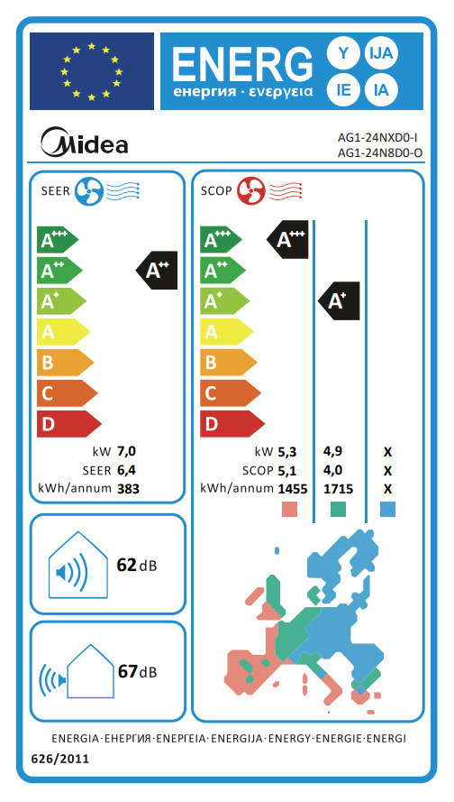 Το κλιματιστικό ανήκει στην ενεργειακή κλάση A++, στην ψύξη και στην ενεργειακή κλάση A+ στη θέρμανση (μέση ζώνη). Η ενεργειακή κλάση μετριέται σε μια χρωματική κλίμακα επτά βαθμίδων από Α+++ έως D, με την κλάση Α+++ να είναι η αποδοτικότερη, ενώ αντίθετα η κλάση D, η ελάχιστα αποδοτική.