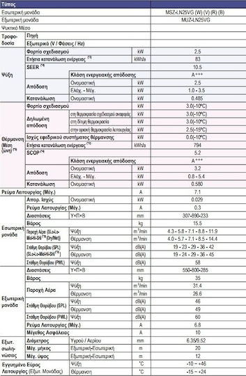 - Βαθμός Απόδοσης Ψύξης (SEER)