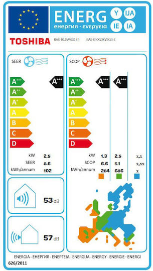 Το κλιματιστικό ανήκει στην ενεργειακή κλάση A+++, στην ψύξη και στην ενεργειακή κλάση A+++ στη θέρμανση (μέση ζώνη). Η ενεργειακή κλάση μετριέται σε μια χρωματική κλίμακα επτά βαθμίδων από Α+++ έως D, με την κλάση Α+++ να είναι η αποδοτικότερη, ενώ αντίθετα η κλάση D, η ελάχιστα αποδοτική.